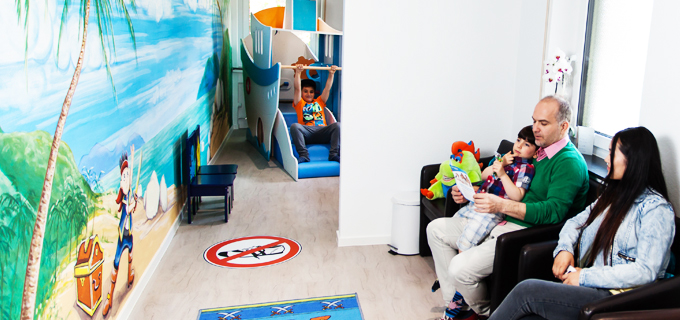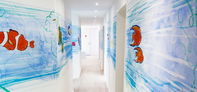Während die Eltern entspannt im Wartezimmer verweilen, können die Kinder in eine spannende Unterwasserwelt abtauchen und der